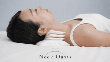 「首の安静をサポートするアイテム」首の自然なカーブを整えるためには、適切なサポートが重要です。整形外科専門医が開発したセルフケア用品「ネックオアシス」は、仰向けでリラックスするだけで首の姿勢を整えることができます。 |